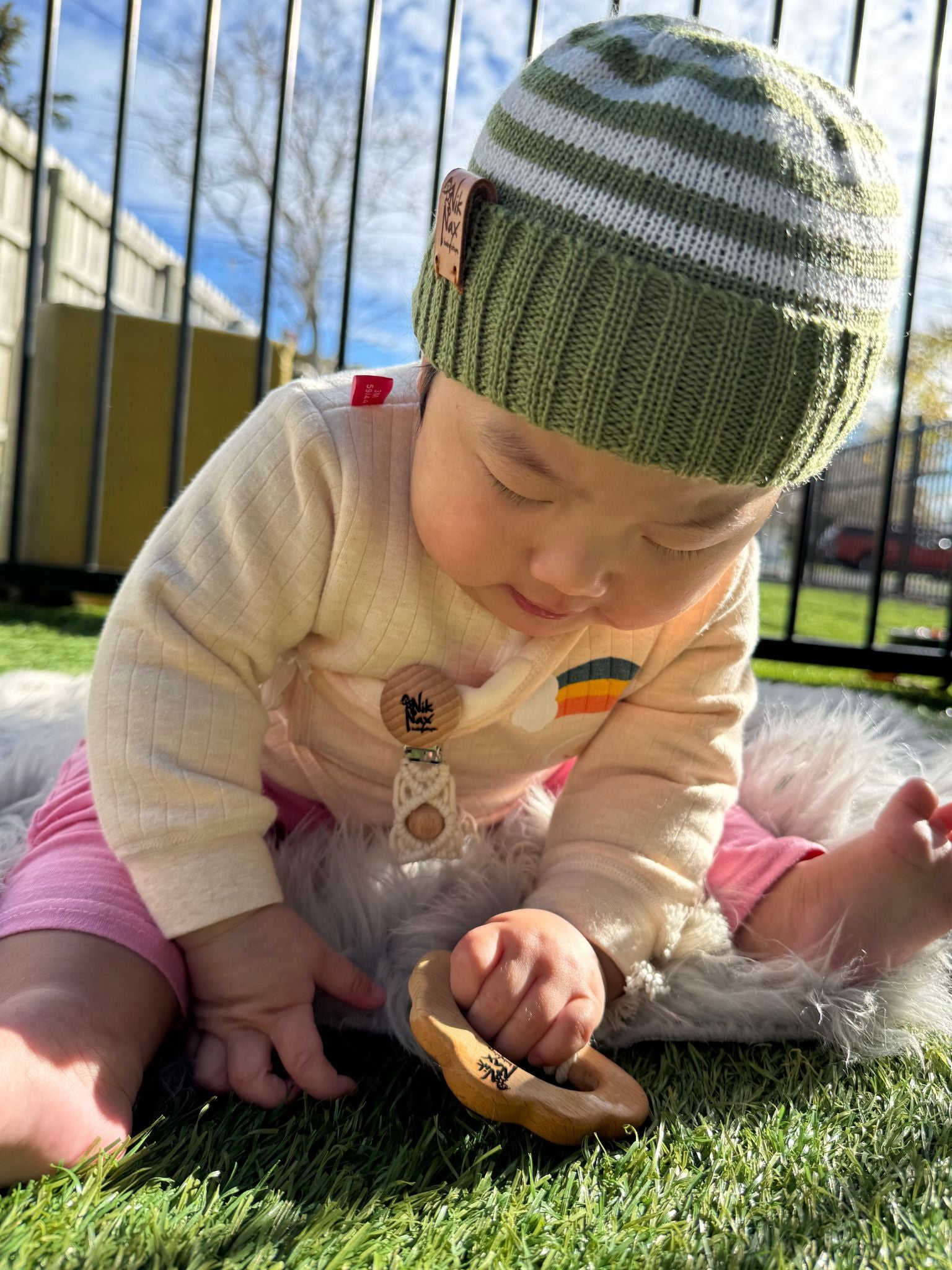 Baby Merino Striped Beanie & Socks | Moss Green | NZ Made