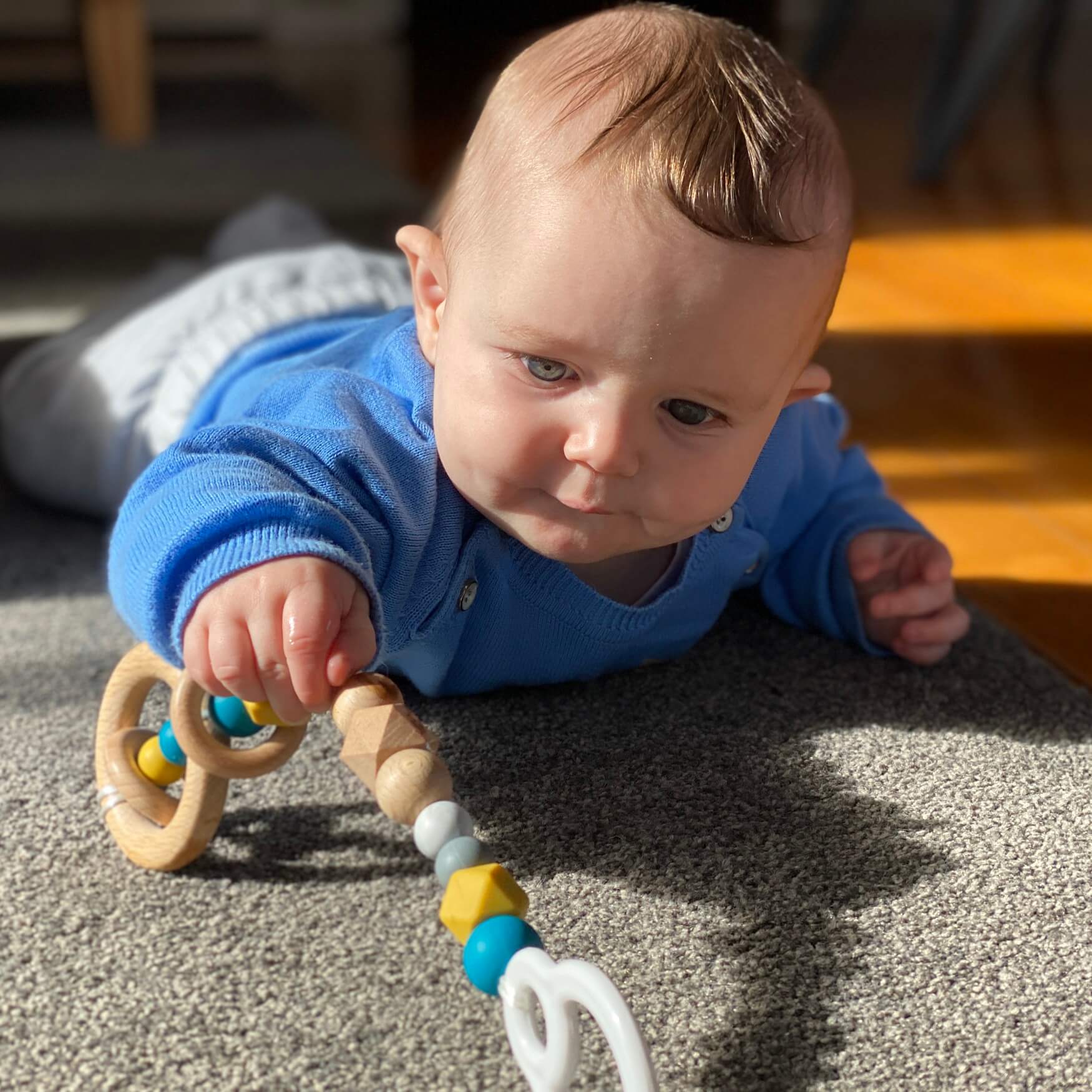 A single activity play gym toy in colour Mustard Tui. These handmade travel attachment toys are versatile and can be hung from anywhere. Through exploration baby develops co-ordination, sensory and motor skills. Safety rated AS/NZ. The style will be choosen in random to be sent.