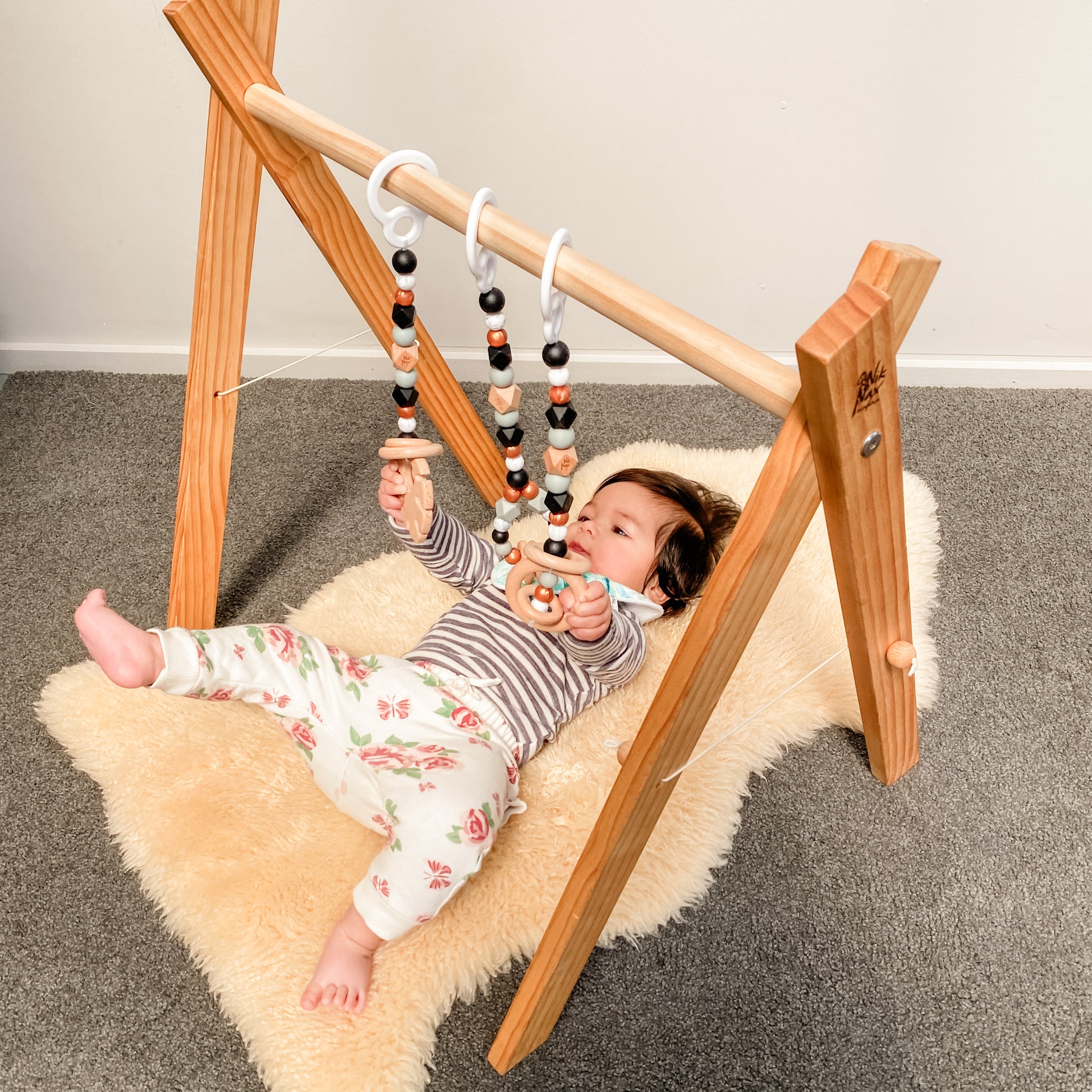 Introducing our NZ Made Wooden Play Gym with our new design of gym toys in Black Marble colour!